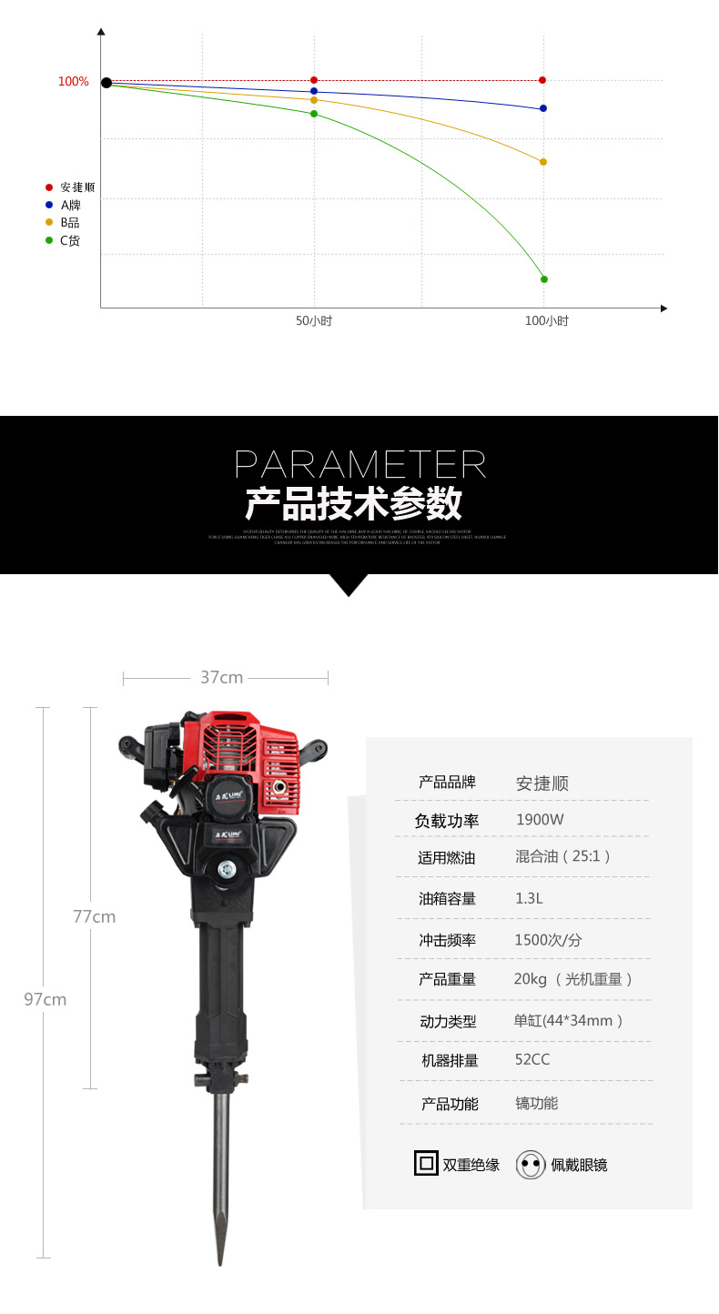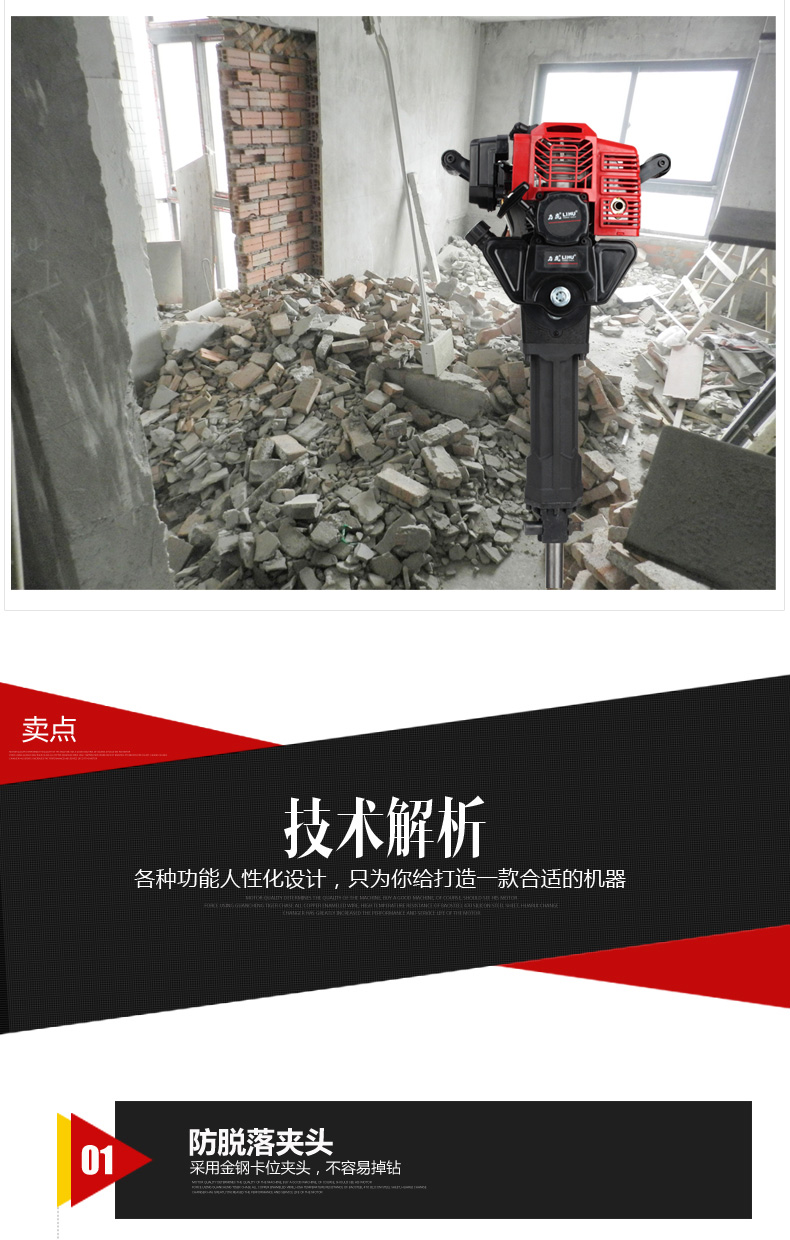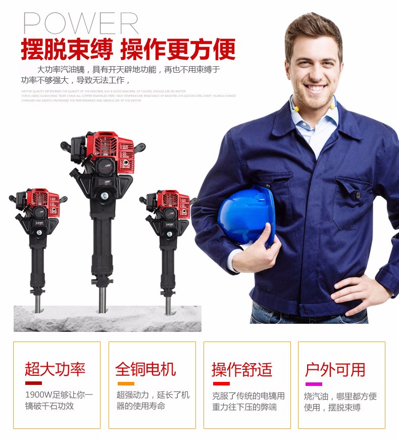 凿岩机工程汽油机破碎镐电镐电锤冲击钻汽油镐挖坑机手提式大功率